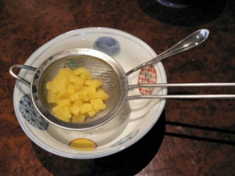 2…柔らかくなったら湯切りをして裏ごしする(ウチの場合は味噌漉し器)) |