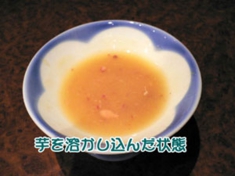 3…猫缶スープを用意して、サツマイモをスープに溶かす(塊がないように混ぜ込む) |